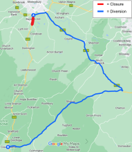 During closures, the following diversion route will be in place for strategic traffic. Local access will be maintained between Craven Arms and Condover.