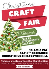 Saturday 6th December, 10am–1pm for a festive, family-friendly craft fair! There’ll be beautiful handmade gifts, tasty refreshments, and plenty of Christmas cheer.